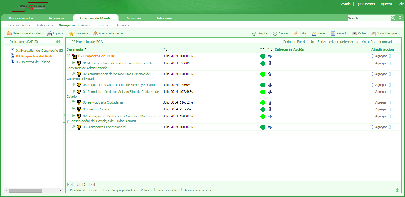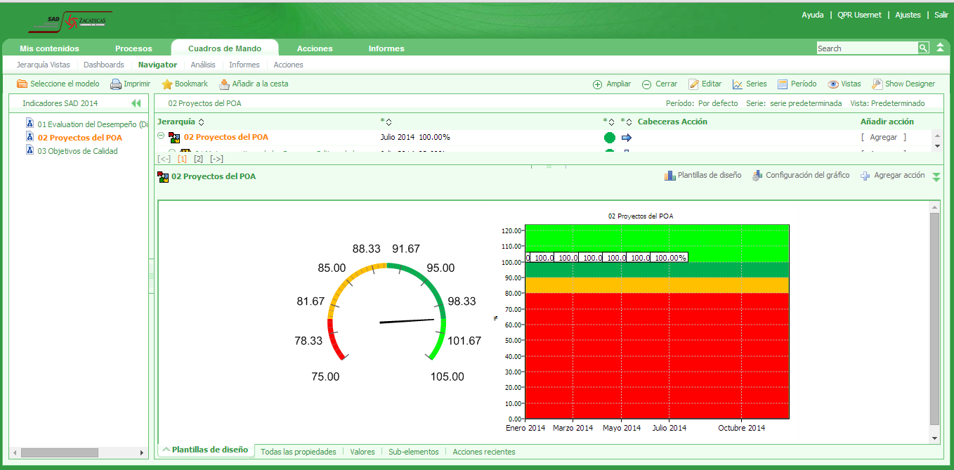 Con el potente sistema del Balanced Scorecard de QPR basado en el desempeño y la gestión de calidad en uso, la secretaría de administración de Zacatecas puede confiar en que siempre podrá entregar a tiempo sus indicadores para la comparación nacional y a su equipo de la alta dirección para la toma de decisiones internas. Tiene en uso de una manera amigable para la presentación de los indicadores que mejor se acomoda a la secretaría de administración y facilitan la integración de los informes de manera mensual, trimestral, semestral y anual. Como el proyecto de seguimiento es a corto plazo permite accionar la capacidad institucional para corregir las desviaciones según proceda los objetivos clave para el seguimiento oportuno de los proyectos y la evaluación se haya cumplido.