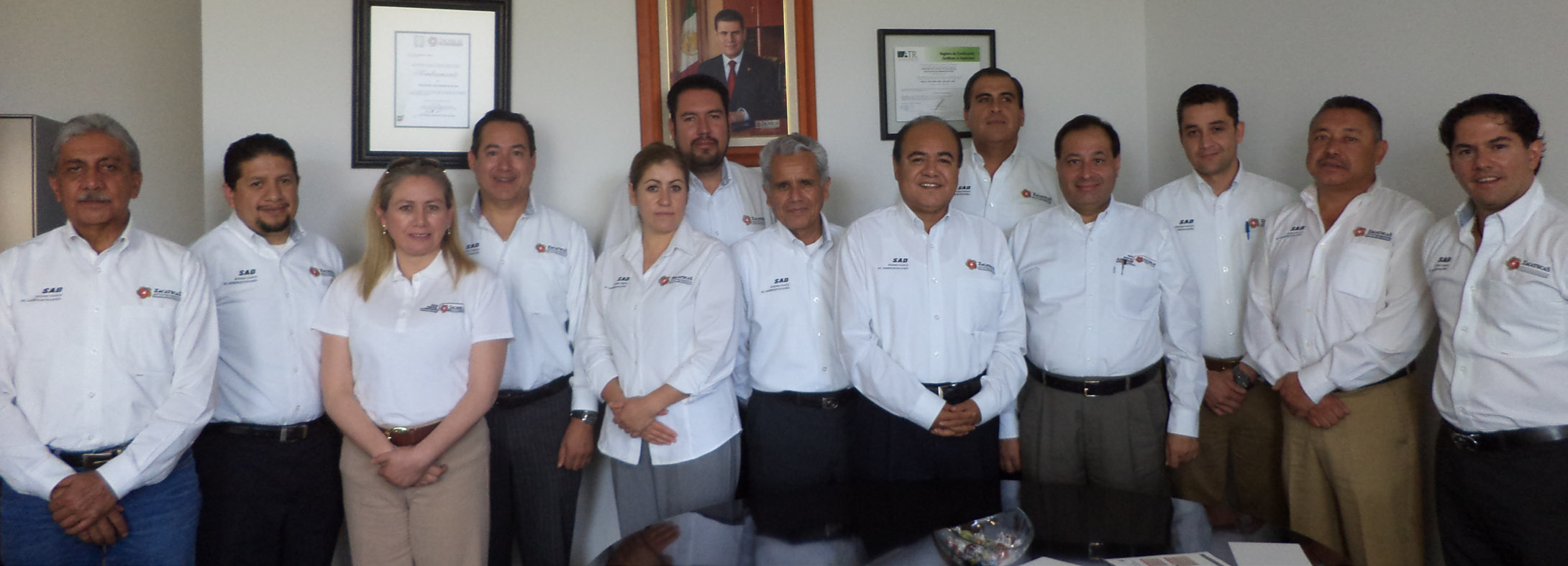 El equipo de la Secretaría de Administración de Zacatecas (a la izquierda):C.P. Pedro González Ramos (Director de Activos), Lic. Uriel Pérez Armas (Subdirector de sistemas de información), Lic. Juana María Hernández Cárdenas (Directora general de recursos humanos), Lic. Frenando Acevedo Vega (Director de adquisiciones), Lic. Celia Patricia Félix Nuñez (Subdirectora de seguimiento de programas), Ing. Fernando de la Cruz Albino (Coordinador de sistemas de información), Ing. Luis Miguel Melgar Mendoza (Secretario técnico), Lic. Le Roy Barragán Ocampo (Secretario de administración), Ing. Horacio Contreras Bañuelos (Director de servicios generales), Lic. Eduardo Uribe Viramontes (Director jurídico), Lic. Víctor Manuel Ornelas Ramírez (Secretario particular), Lic. Víctor Juan Martínez García (Asesor), y Lic. Jose Santos Salas Velazquez (Subsecretario de recursos materiales y servicios).